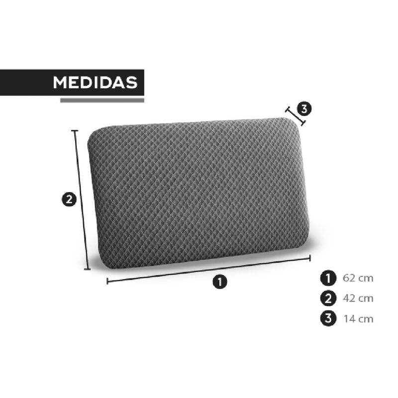 Almohada Memory foam color negro de 62 x 14 x 42 cm. Descansa como mereces. Diseñada para adaptarse a ti y brindarte un sueño profundo y reparador. Ofrece soporte anatómico y mantiene una frescura ideal durante la noche. Con forro removible, protección antibacterial y tela antiácaros, es perfecta para quienes buscan higiene, confort y bienestar sin complicaciones. Ideal para dormir de lado, boca arriba o boca abajo. Medidas del producto (Alt+Anch+Prof): 42 x 62 x 14 cm Chaide
