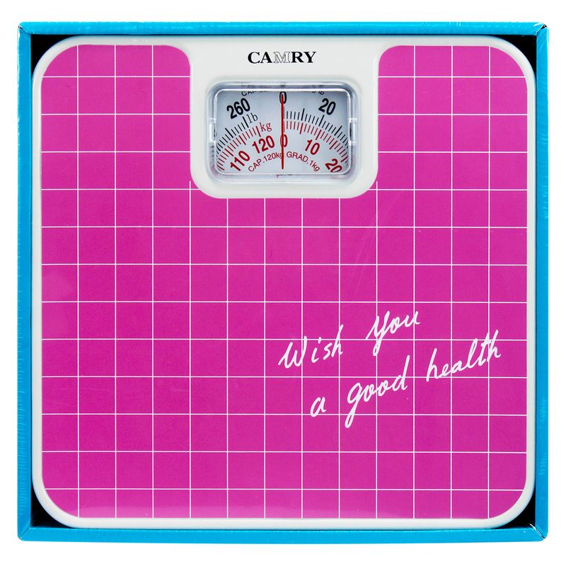 Balanza cuadrada de diseño clásico texturizada color rosa para baño. Cuenta con una plataforma antideslizante recubierta con alfombra de PVC, que brinda seguridad y confort al usarla. Con una capacidad máxima de 120 kg / 260 lbs y una graduación precisa de 1 kg / 2 lb, es ideal para un seguimiento confiable de tu peso en casa. Robusta, funcional y fácil de usar, es el complemento perfecto para tu rutina de bienestar. Medidas del producto (Alt+Anch+Prof): 4,5 x 26 x 25,5 cm CAMRY