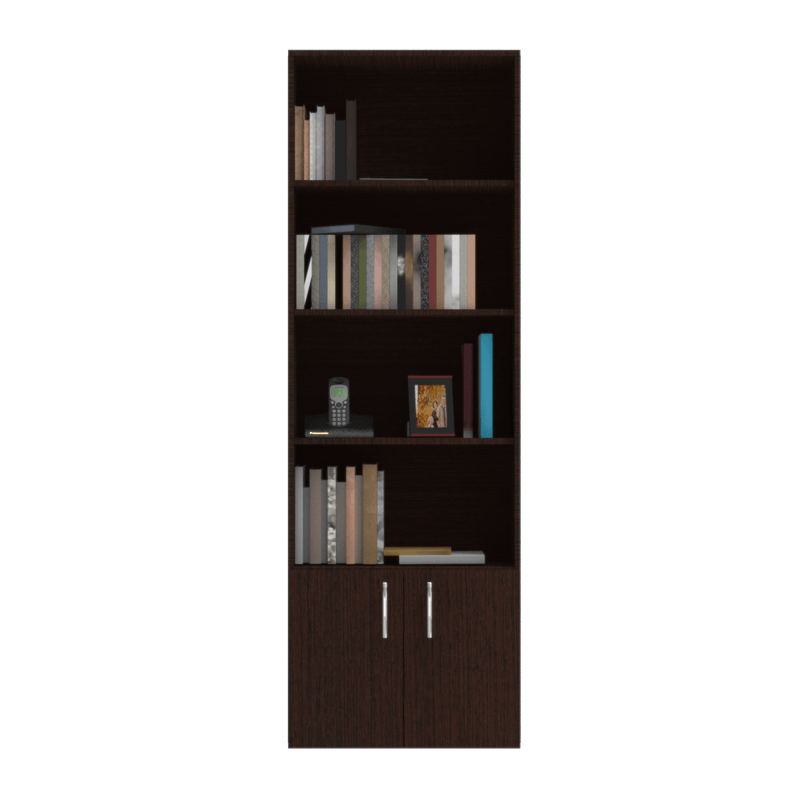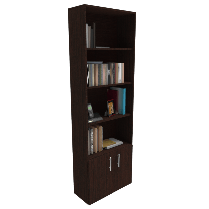 Biblioteca café Biblioteca con 2 puertas inferiores. 183X60X25Fabricada en melamínico AAA fácil de limpiar y desinfectar, se no mancha ni se decolora. Color Wengue. Precio no incluye armado o instalación. MUEBLE FÁCIL