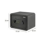 Caja fuerte digital con seguridad de huella dactilar y tamaño de 20 cm. Diseñada para ofrecer seguridad de vanguardia. Su avanzado sistema de desbloqueo por huella dactilar permite un acceso rápido y exclusivo para el usuario, combinando la fiabilidad de la cerradura electrónica con la tecnología biométrica más eficiente, ideal para proteger documentos importantes, joyas o dinero en efectivo de forma discreta y robusta. Ⓘ Imágenes referenciales. Medidas del producto (Alt+Anch+Prof): 22 x 31 x 20 cm K PRO
