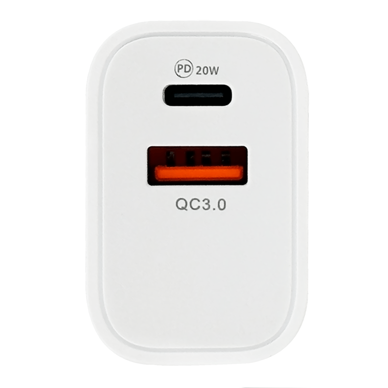Cargador USB 3.0 de carga rápida 20W/3A de potencia con entradas USB-A y USB-C. Cargador compacto con dos puertos inteligentes: uno USB-A 3.0 con Quick Charge 3.0 y otro USB-C Power Delivery. Perfecto para cargar dos equipos simultáneamente sin sacrificar velocidad ni seguridad. Medidas del producto (Alt+Anch+Prof): 5,5 x 4,2 x 3 cm LSC