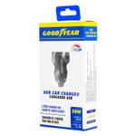 Cargador USB para auto con 2 puertos y 38 W de potencia. Cuenta con dos puertos: USB-C de 20 W y USB QC 3.0 de 18 W, ofreciendo carga rápida y eficiente para smartphones, tablets y más. Compacto, seguro y perfecto para viajes diarios o largos trayectos. Medidas del producto (Alt+Anch+Prof): 4 x 2,5 x 2,5 cm GOODYEAR