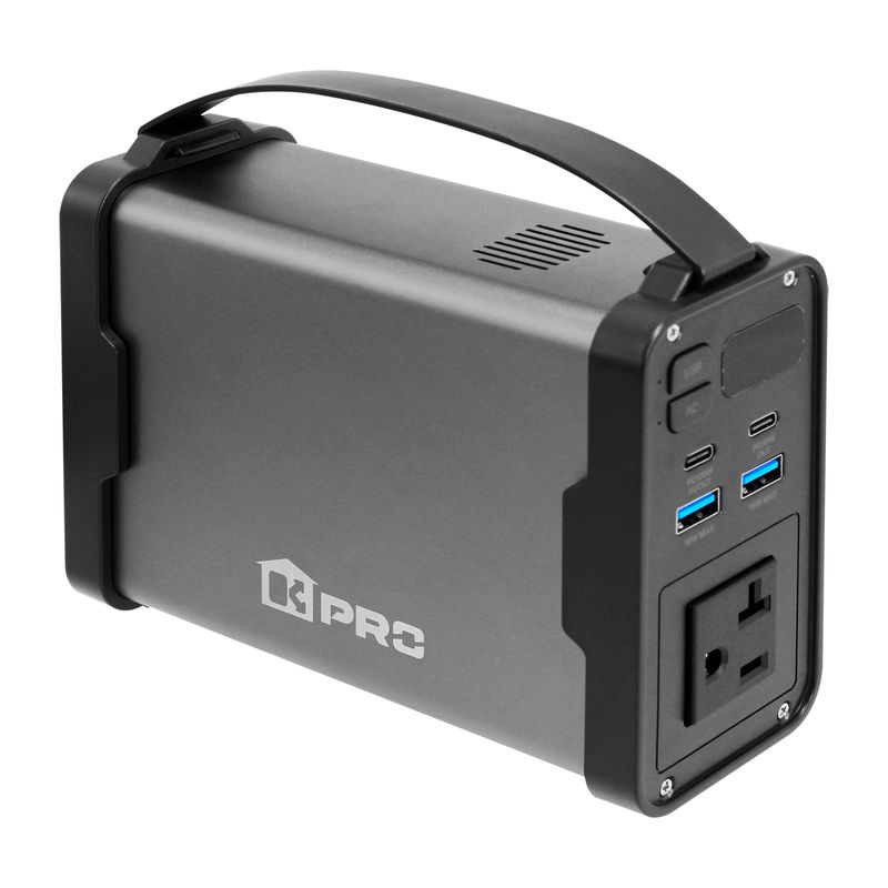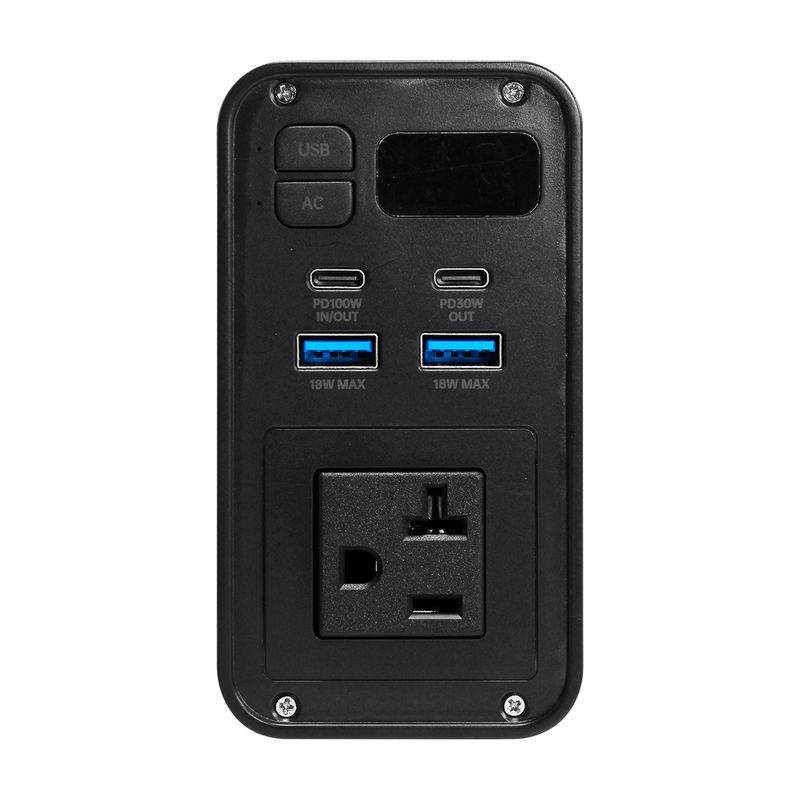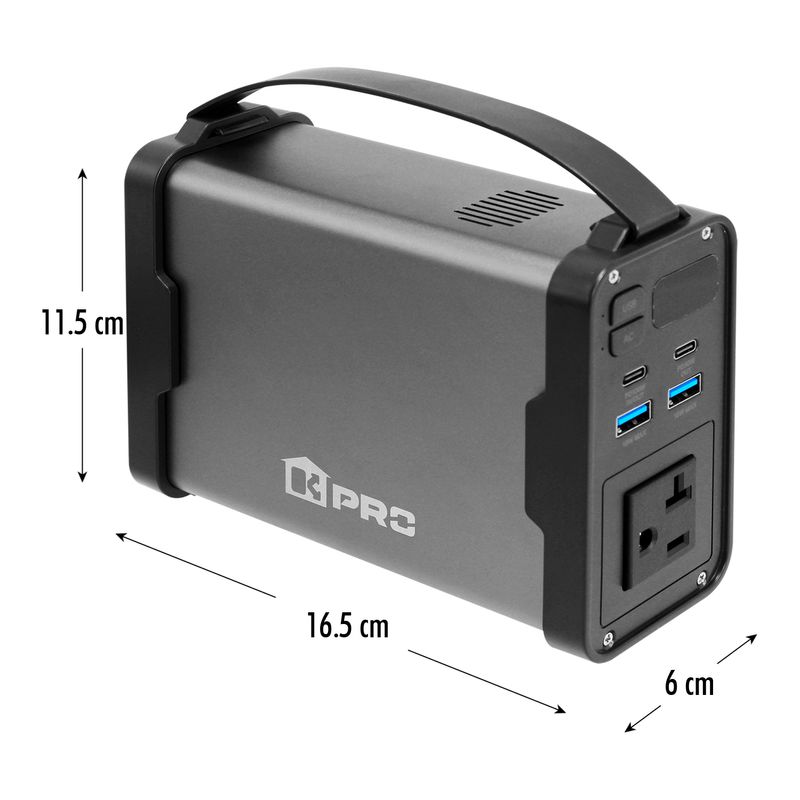 Central de poder portátil multitoma con 100 W de potencia. Con múltiples salidas —AC, USB con carga rápida QC, PD 30 W y PD 100 W— y un inversor inteligente, podrás cargar tus dispositivos de manera rápida y segura. Su display y los switches independientes para USB y AC facilitan el control, mientras que la linterna LED integrada te ofrece iluminación adicional. Con solo 2.5 h de carga, esta estación de energía compacta es ideal para viajes, emergencias o actividades al aire libre. Medidas del producto (Alt+Anch+Prof): 11,5 x 16,5 x 6 cm K PRO