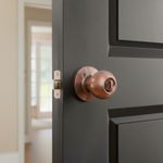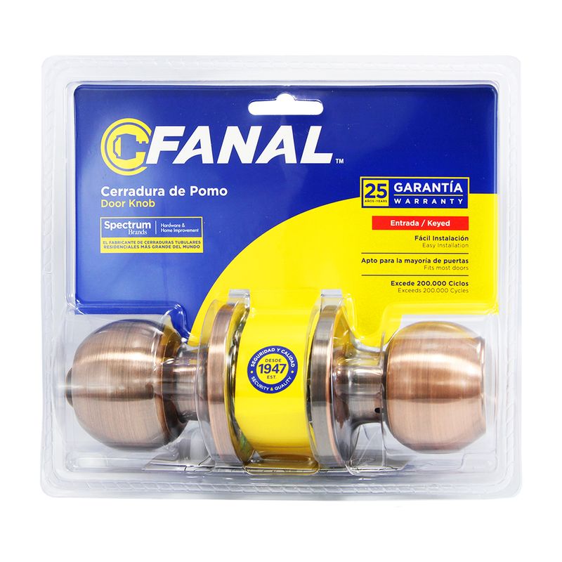 Cerradura de pomo para dormitorios con acabado cobre, modelo antiguo. Dale seguridad y estilo a tu hogar. Su diseño clásico aporta un toque de elegancia y color, ideal para puertas de sanitarios u otras estancias donde se requiera cerradura con llave. Una combinación perfecta entre funcionalidad, resistencia y sofisticación para renovar tus espacios con carácter tradicional. Medidas del producto (Alt+Anch+Prof): 6,5 x 13 x 6,5 cm FANAL