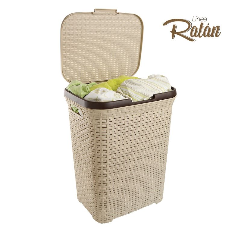 Cesto de Ropa Ratan con tapa crema. - CASA PICA
