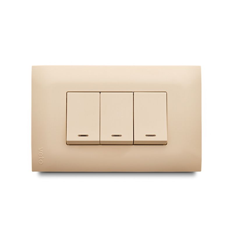 Conmutador triple de boton ancho con luz piloto SERIE VIVE. - VETO