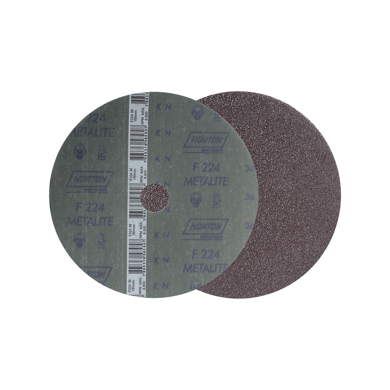 Disco de lija F224 de 7" con grano de óxido de aluminio G36(CAMI) Utilizada para desbaste y lijado de aceros, utilizados mayormente en la industria metalmecánica y automotriz. Se debe utilizar en una pulidora angular portátil Medidas del producto (Alt+Anch+Prof): x x cm NORTON