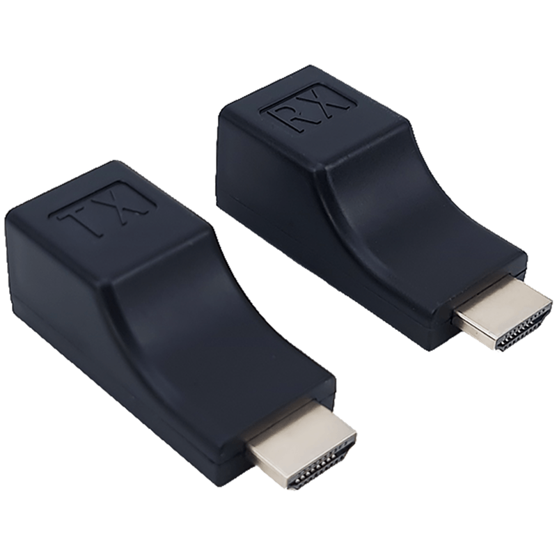 Extensor HDMI 4K con conector RJ45; extensión práctica con cable UTP Cat 6A. Permite transmitir señal de video y audio en Full HD 1080p hasta 30 metros con cable UTP y hasta 10 metros con cable Cat 6, sin pérdida de calidad. Su instalación es sencilla gracias al uso de cable UTP, y al ser un dispositivo pasivo no necesita alimentación extra. Incluye adaptadores TX(Transmisor) y RX(Receptor) HDMI, ideal para salas de TV, aulas, auditorios o estudios de proyección Medidas del producto (Alt+Anch+Prof): x x cm LSC