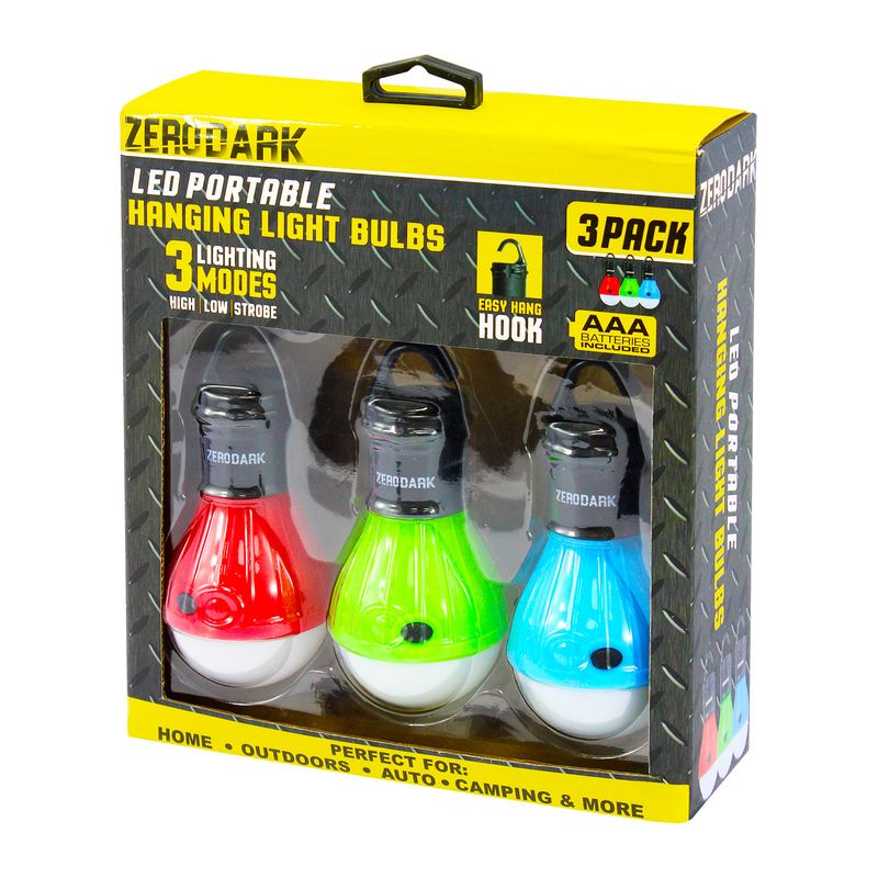 Focos LED portátiles con gancho para colgar; Funcionamiento a pilas. Ideales para el hogar, campamentos, actividades al aire libre, automóviles y más. Fabricados con materiales ABS de alta calidad, son compactos, resistentes a golpes y al agua, lo que garantiza durabilidad y confiabilidad en todo momento. Cuentan con 3 modos de luz (alto, bajo y parpadeante) y un gancho integrado para colgar fácilmente donde lo necesites. Funcionan con 3 pilas AAA incluidas, ofreciendo máxima cobertura y portabilidad. Medidas del producto (Alt+Anch+Prof): 11,5 x 5,3 x 5,3 cm ZERO DARK