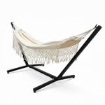 HAMACA PORTATIL BLANCA METAL 3X1,10M RAGO Incluye tela hamaca resistente, estructura metálica desarmable, reforzada, con pntura electrostática, resiste 100Kg. FÁCIL DE ARMAR, dim: 3,15x1,10 m.