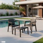 Siéntese y relájese gracias a su forma ergonómica, con o sin cojines de asiento. Incluye 2 sillones y mesa de centro. Admirará el elegante acabado de red, la construcción de resina duradera que es fácil de mantener. Un diseño cuidadoso, montaje encajable y simple, no se requieren herramientas. Puro confort y alegría. ¡Solo 5 minutos para ensamblar y no se requieren herramientas! Fácil de limpiar y resistente al mal tiempo y a los rayos UV.