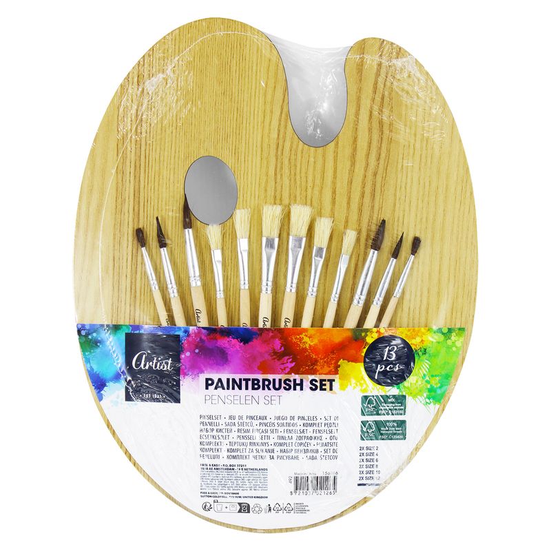 Juego de 12 pinceles con paleta para pintura de lienzo. Diseñado tanto para principiantes como para artistas experimentados, incluye pinceles de diferentes tamaños y formas para lograr trazos precisos y efectos variados, junto con una paleta práctica que facilita mezclar colores de manera cómoda y organizada. Ideal para explorar técnicas, experimentar con tonos y dar vida a tus ideas en cada lienzo. Medidas del producto (Alt+Anch+Prof): 29,5 x 23,5 x 1 cm EXCELLENT HOUSEWARE