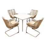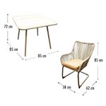 Juego de patio con 1 mesa + 4 sillas DECO cuadrado para terraza, jardín, patio y más. Perfectas para reuniones al aire libre. Fabricado con materiales resistentes y de fácil limpieza, combina comodidad y estilo para crear un ambiente acogedor en cualquier espacio exterior. Medidas del producto (Alt+Anch+Prof): 72 x 85 x 85 cm K HOME