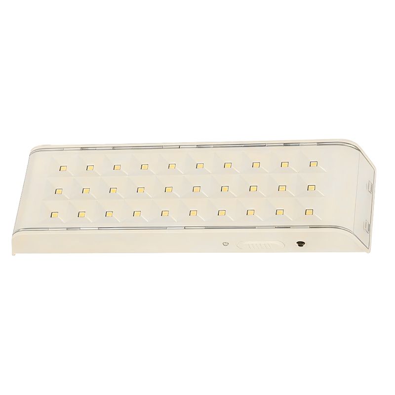 Lámpara LED de emergencia RECARGABLE de 3 de potencia y 360/180 lm, luz blanca. Ilumina tu hogar de manera segura y eficiente. Su luz blanca de 6000 K ofrece 360 lúmenes de claridad inmediata, ideal para cortes de energía o rincones oscuros. Compacta, duradera y con acabados en blanco elegante, combina diseño y funcionalidad con una vida útil de 15 000 h. Perfecta para cualquier espacio que necesite luz confiable al instante. Medidas del producto (Alt+Anch+Prof): 2,8 x 20 x 5,8 cm GENERAL LIGHTING