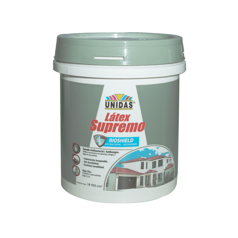 Pintura látex SUPREMO Marfil con tecnología Bioshield 99 % antibacterial CANECA. Bajo olor, acabado mate y mayor cubrimiento. Diseñado con un cubrimiento óptimo en menor cantidad de manos. El color es referencial y puede variar ligeramente del producto final. Medidas del producto (Alt+Anch+Prof): 37 x 35 x 37 cm PINTURAS UNIDAS