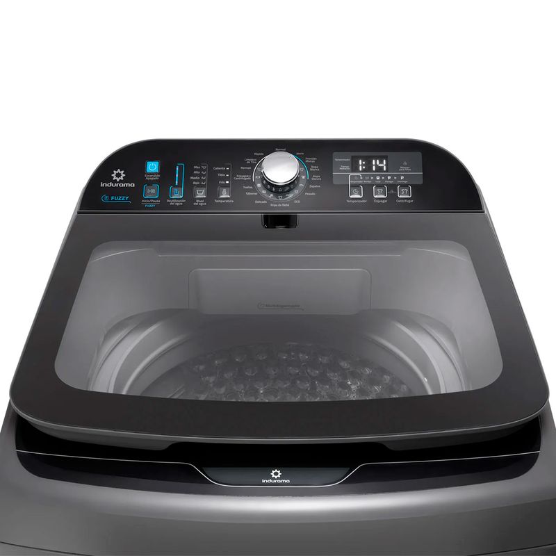 Lavadora Automática de carga superior de 17 kg de capacidad y 16 programas de lavado LRI-17DGR lavado inteligente y más potente, prendas limpias y bien cuidadas, libres de bacterias.Información general• Lavadora de carga superior 17Kg• Disponible en croma• Tapa de vidrio transparente con ralentizador• Tecnología anti-enredo• Dispensador multiuso (suavizante, detergente, blanqueador)• Opción de reutilización de agua• Cuatro niveles de agua• Tres opciones de temperatura de agua (frío, tibio, caliente)Interior• Tambor de acero inoxidable con diseño tipo diamante• Filtro atrapa pelusasFunciones• Lavado inteligente (sistema Fuzzy)• Temporizador digital• Bloqueo de panel de funciones 17Kg - Sistema Fuzzy• Alarma de error• 16 programas de lavadoNormal, jeans, mixto, ropa blanca, ropa obscura, zapatos, pesado, sintético, ropa de bebé, potencia ahorro durabilidad delicado, sábanas, toallas, enjuague y centrifugado, remojo, limpieza de tina y rápido. Medidas del producto (Alt+Anch+Prof): 106 x 60,1 x 61,1 cm INDURAMA