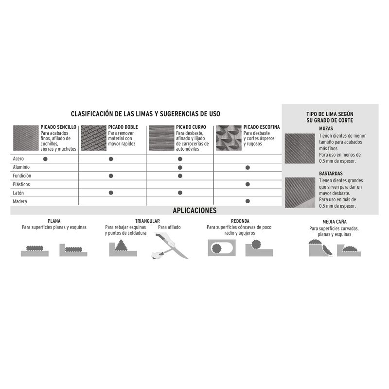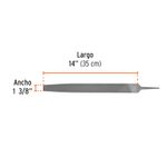 Lima plana Gruesa de 14″ para desbaste de superficies planas y esquinas. Lima plana gruesa / bastarda de 14 pulgadas de longitud, ideal para trabajos de desbaste en metales y otros materiales, con picado grueso para una remoción rápida de material. Medidas del producto (Alt+Anch+Prof): x x cm TRUPER