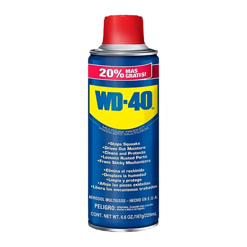 Líquido penetrante multiusos WD-40 de 6,6 oz. en tamaño promocional. Imprescindible para aflojar, lubricar y proteger todo tipo de superficies y mecanismos. Ideal para el hogar, el taller o el automóvil, su fórmula versátil elimina el óxido, repele la humedad y facilita el mantenimiento de herramientas, bisagras y piezas mecánicas, asegurando un rendimiento confiable y duradero en cada uso. Medidas del producto (Alt+Anch+Prof): 19,5 x 5,2 x 5,2 cm WD-40