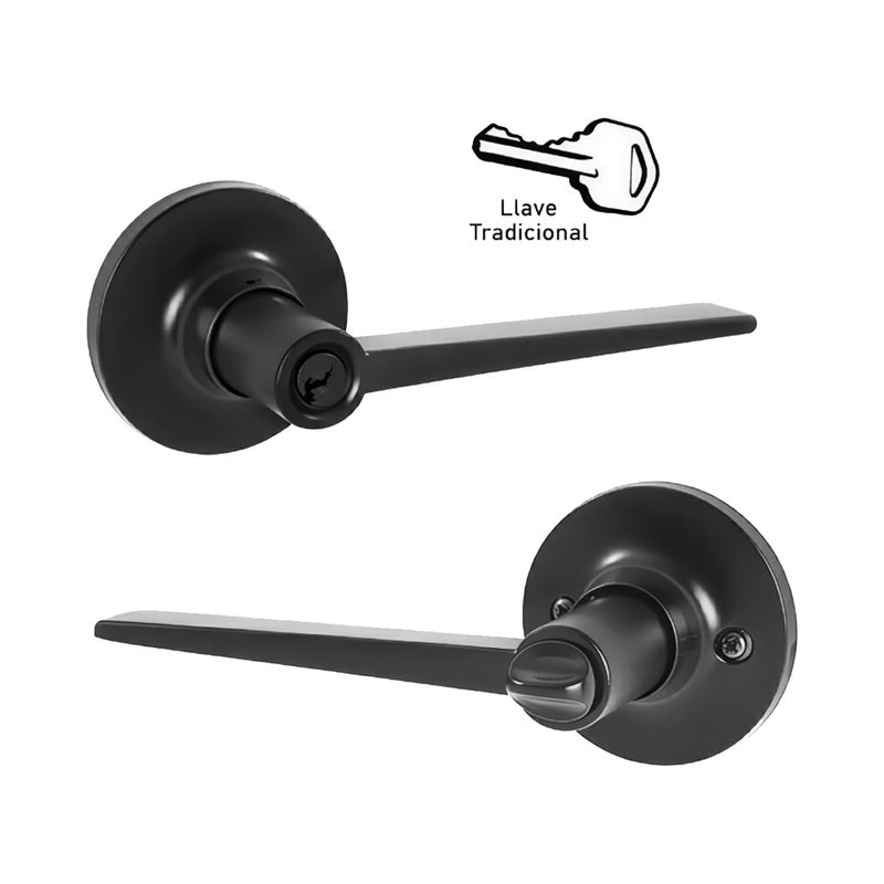 Cerradura de manija negro mate "Rennes" para uso en dormitorio. Combina estilo moderno y sofisticación con funcionalidad confiable, ofreciendo un cierre seguro y suave al tacto que realza la estética de tu espacio. Ideal para quienes buscan comodidad y diseño en un solo producto, la cerradura Rennes es la opción perfecta para tu hogar. Medidas del producto (Alt+Anch+Prof): 6,5 x 16 x 13,7 cm FANAL