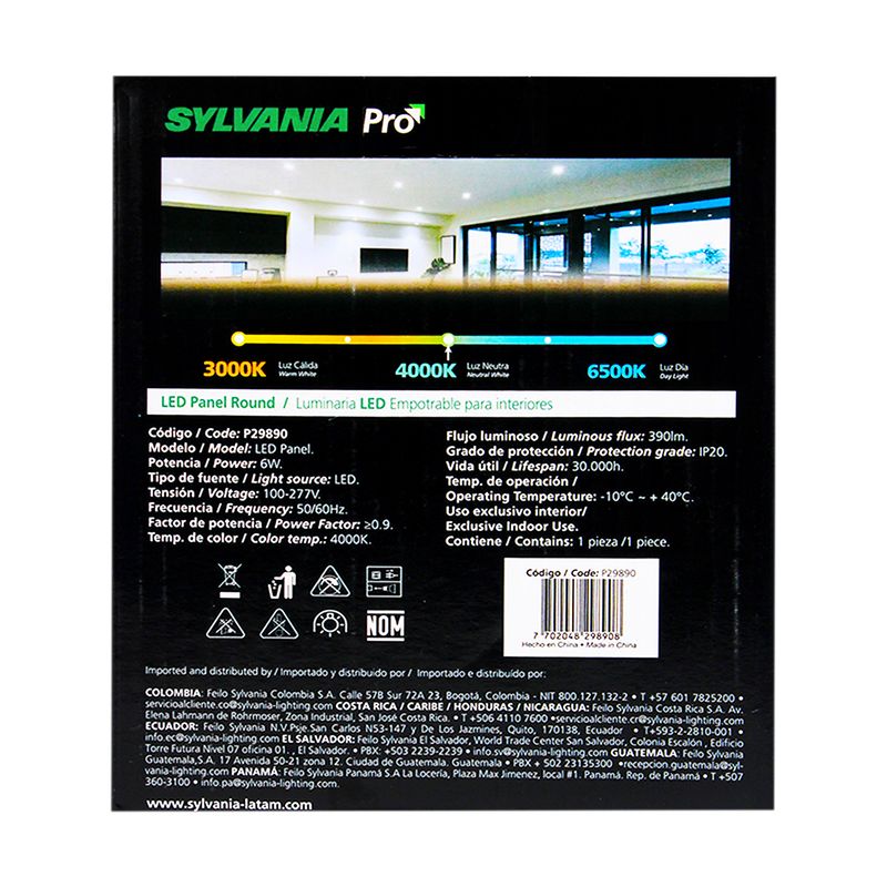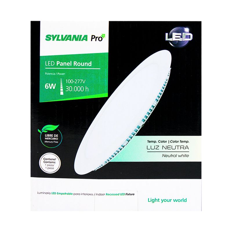 Panel LED redondo PRO, EMPOTRABLE de 6W, 390lm, luz neutra. Diseñado para ofrecer luz blanca intensa de 6500 K que ilumina al instante cualquier ambiente. Con un encendido inmediato y una potencia de 390 lm, este panel es seguro al tacto y funciona de manera eficiente en un rango de 100 - 277 V, ofreciendo un consumo mínimo de 70 mAh. Su diseño empotrable combina funcionalidad y estética, ideal para oficinas, cocinas o cualquier lugar que requiera iluminación confiable y moderna. Medidas del producto (Alt+Anch+Prof): 0,7 x 12 x 12 cm SYLVANIA