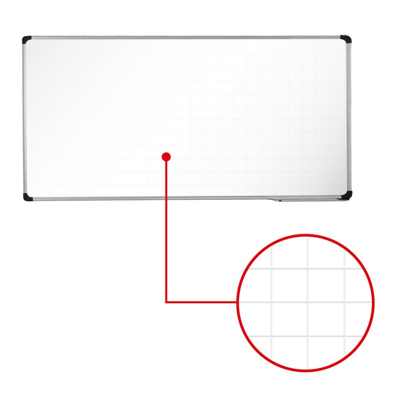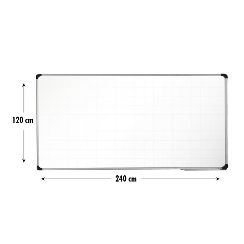 Pizarra magnética con perfil de aluminio de 240x 120 cm con fondo blanco cuadriculado. Ideal para instituciones educativas, oficinas, cuartos de trabajo y más. Perfecto para la creatividad y la organización en cualquier espacio de trabajo. Su diseño es resistente y duradero. Modelo de pizarra para marcadores de tiza líquida. Contiene esquineros plásticos de ABS resistente. Diseño de tramado cuadriculado. Medidas del producto (Alt+Anch+Prof): 120 x 240 x 2,5 cm KENART
