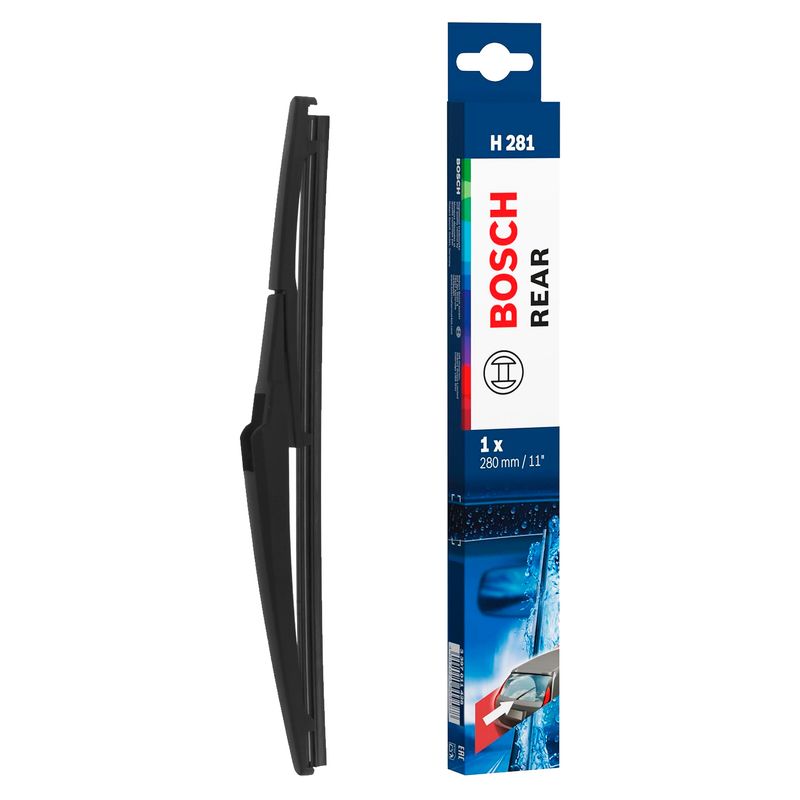 Pluma limpia parabrisas TRASERA de 11", color negro, apto para Hyundai, Jeep y Kía. Diseñada en color negro elegante y resistente, garantiza un barrido uniforme y sin rayas incluso en condiciones de lluvia intensa. Compatible con vehículos Hyundai, Jeep y Kía, es la opción ideal para seguridad y comodidad en cada trayecto. Fácil de instalar, práctica y duradera: el repuesto perfecto para tu auto. Medidas del producto (Alt+Anch+Prof): 3,3 x 28,5 x 3,3 cm BOSCH