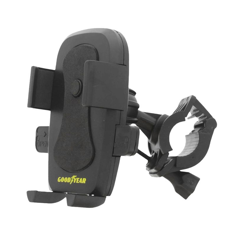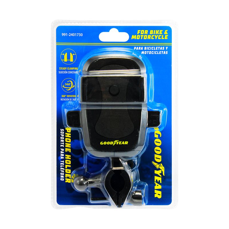 Soporte de celular con sujeción constante y giro 360° para bicicletas y motos. Mantén tu teléfono seguro en todo momento mientras navegas, sigues rutas o escuchas música, con la comodidad de ajustar el ángulo a tu preferencia para una visibilidad perfecta en cualquier recorrido. Ideal para quienes buscan seguridad, practicidad y libertad en cada viaje. Medidas del producto (Alt+Anch+Prof): 17 x 10 x 5,5 cm GOODYEAR