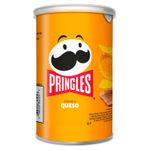Papas PRINGLES crujientes de sabor a Queso 71 gr. Su forma perfecta, sabor intenso y crujiente inolvidable las hacen las favoritas de grandes y chicos. Ya sea para maratonear series, estudiar o compartir con panas, una cosa es segura: una no es suficiente. Cada chip está sazonado de forma uniforme para una experiencia intensa en cada mordida. Su icónico envase cilíndrico evita que las papas se rompan y es tan práctico que puedes llevarlo en tu mochila, carro o escritorio. Medidas del producto (Alt+Anch+Prof): x x cm PRINGLES