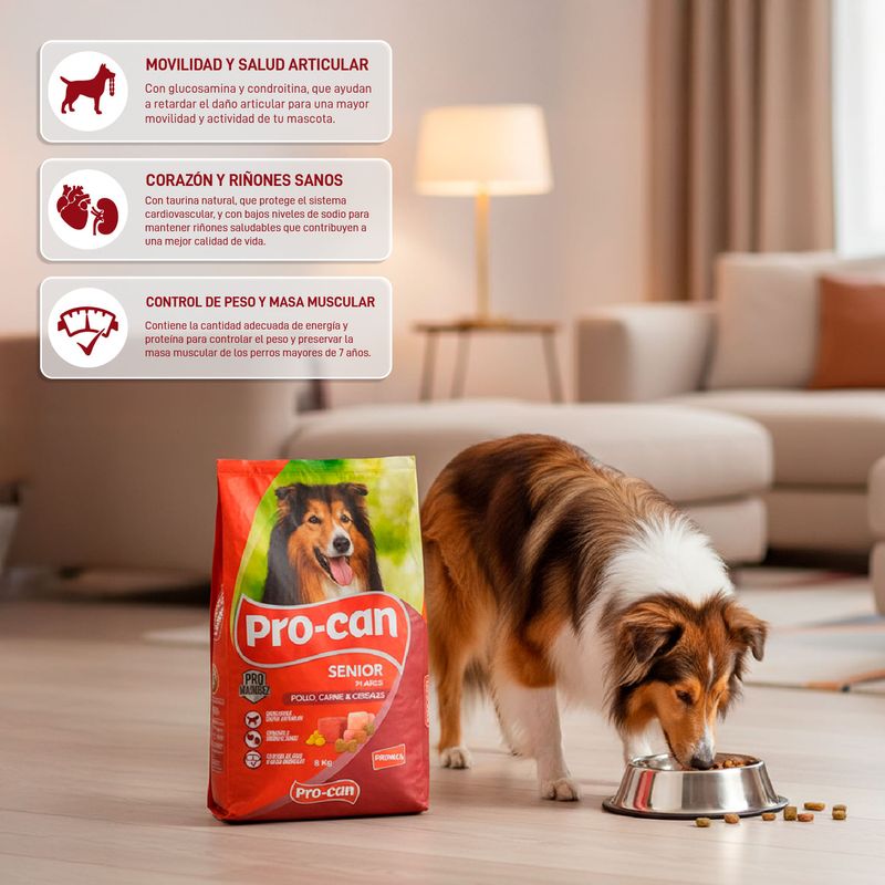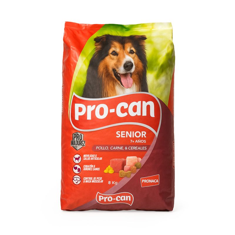 Comida para perros senior, todas las razas , sabor a carne, pollo y cereales 8 kg. Procan