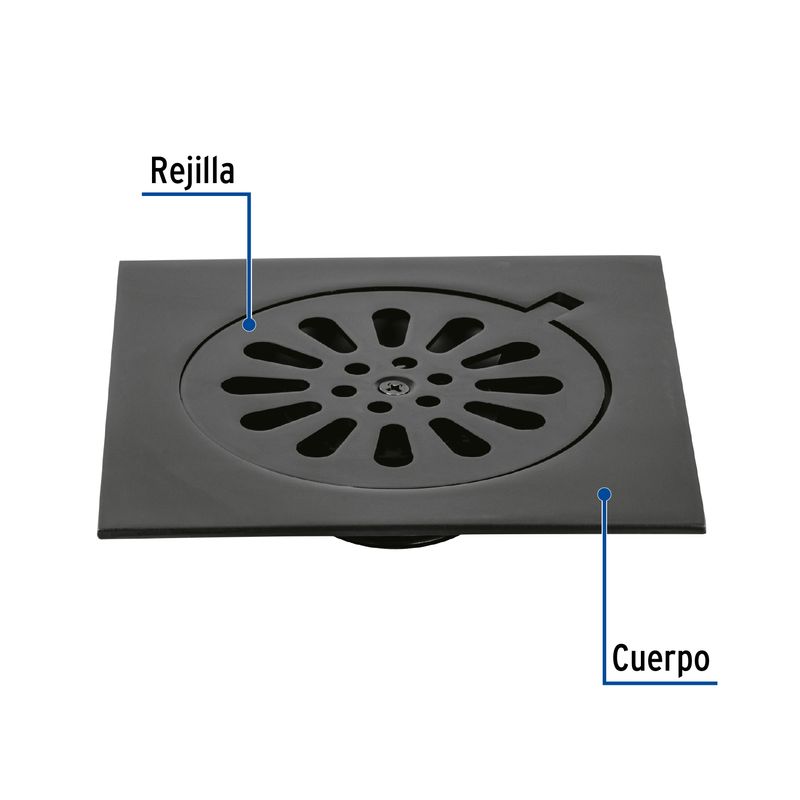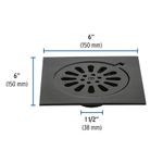 Rejilla cuadrada de 6" x 6" de latón con acabado negro mate. Fabricado en cuerpo y rejilla de latón para máxima resistencia a la corrosión. Cuenta con sello hidráulico que bloquea el retorno de olores, ideal para mantener espacios más higiénicos. Perfecto para desagües interiores y exteriores, combina durabilidad, funcionalidad y diseño moderno. Medidas del producto (Alt+Anch+Prof): 3,5 x 15 x 15 cm FOSET