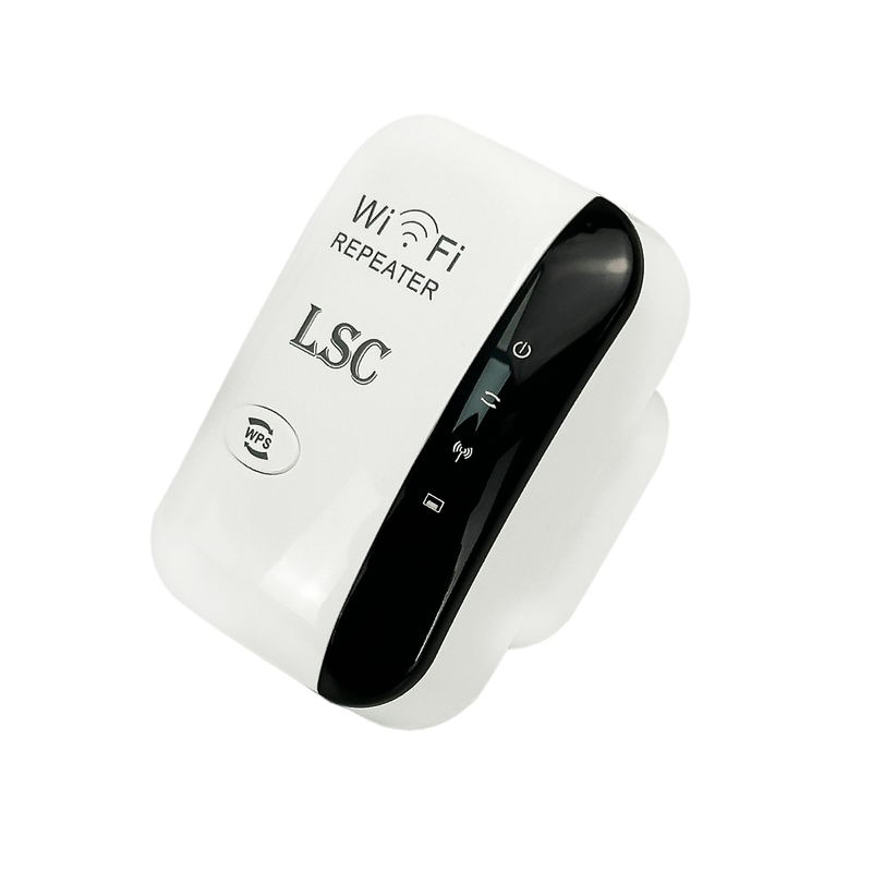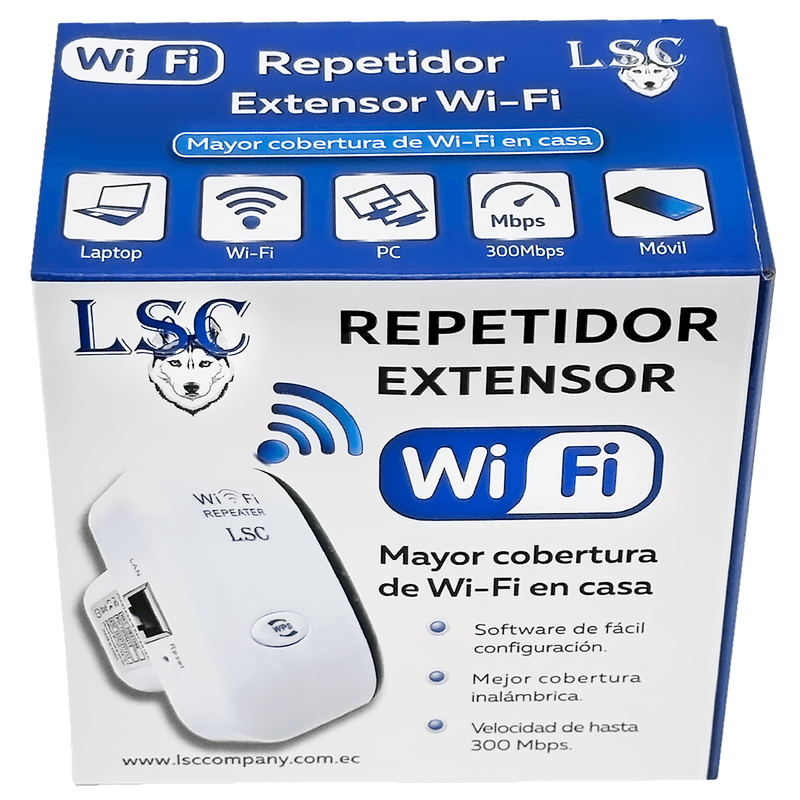 Repetidor Extensor WiFi 300 Mbps para ampliar la red Wi-Fi con un clic. Mejora la cobertura inalámbrica de cualquier red WLAN, ofreciendo transmisión rápida y estable hasta 300 Mbps. Compatible con smartphones, tablets, laptops, PC y Smart TV, cuenta con máxima seguridad WPA2, WPA y WEP (128/164) y un asistente de software que facilita la configuración. Soporta modo repetidor inalámbrico y modo estándar AP para adaptarse a todas tus necesidades de conexión. Medidas del producto (Alt+Anch+Prof): 11,2 x 11,2 x 6,5 cm LSC