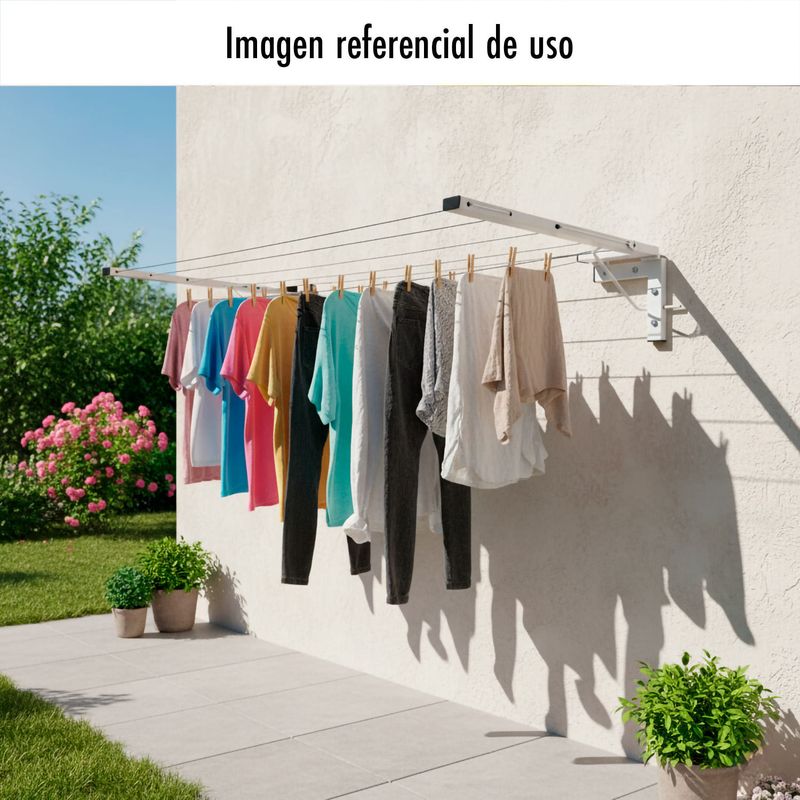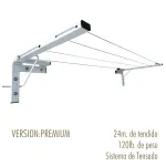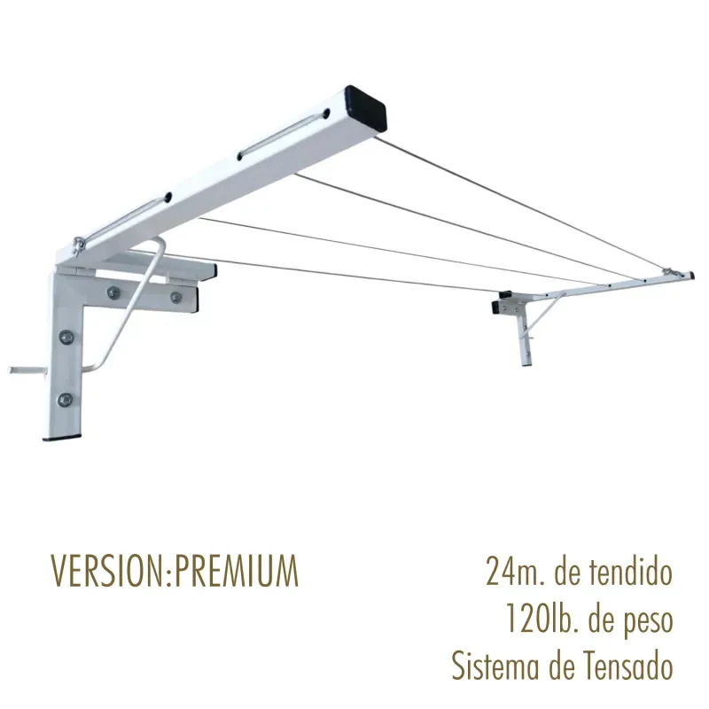 Tendedero plegable PREMIUM de 6 x 1/2 m con cable de acero + Kit de Instalación. Ideal para espacios grandes, medianos y pequeños. Longitud de tendido de hasta 24 metros. Rango lineal: 6 metros. Fabricado en metal de alto desempeño con revestimientos únicos que incrementan la resistencia a la intemperie (anticorrosivo). Resiste hasta 120 lbs de peso. Soporta: cobijas, edredones, alfombras, etc. Incluye Kit de Instalación. Optimiza el espacio de tu patio y/o cuarto de lavado. Tiene varias prestaciones: a) templado, que mantiene los cordeles estéticamente siempre firmes; b) plegado (abre-cierra), que permite su mimetización en los espacios; c) extendible (según su necesidad), puede usarse en paredes pequeñas de 1 o 2 metros, medianas de 3 o 4 metros, y grandes de hasta 6 metros. Medidas del producto (Alt+Anch+Prof): 5 x 19 x 50 cm FORTE