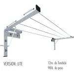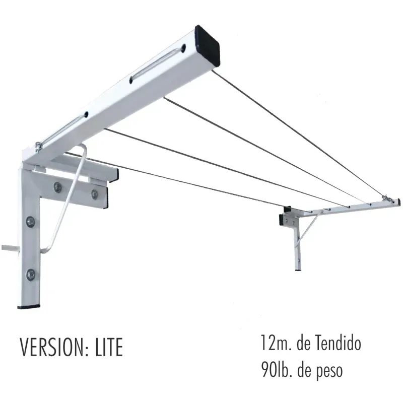 Tendedero plegable LITE de 3 x 1/2 m con cable de acero + Kit de Instalación. Perfecto para espacios medianos y pequeños. Longitud de tendido de hasta 12 metros. Rango lineal: 3 metros. Fabricado en acero de alto desempeño con revestimientos únicos que incrementan la resistencia a la intemperie (anticorrosivo). Soporta: cobijas, edredones, alfombras, etc. Resiste hasta 90 lbs de peso. Incluye kit de instalación. Optimiza el espacio de tu patio y/o cuarto de lavado. Tiene varias prestaciones: a) plegado (abre-cierra), que permite su mimetización en los espacios blancos; b) extendible (según su necesidad), puede usarse en paredes pequeñas de 1 o 2 metros, y medianas de hasta 3 metros. Medidas del producto (Alt+Anch+Prof): 5 x 19 x 50 cm FORTE